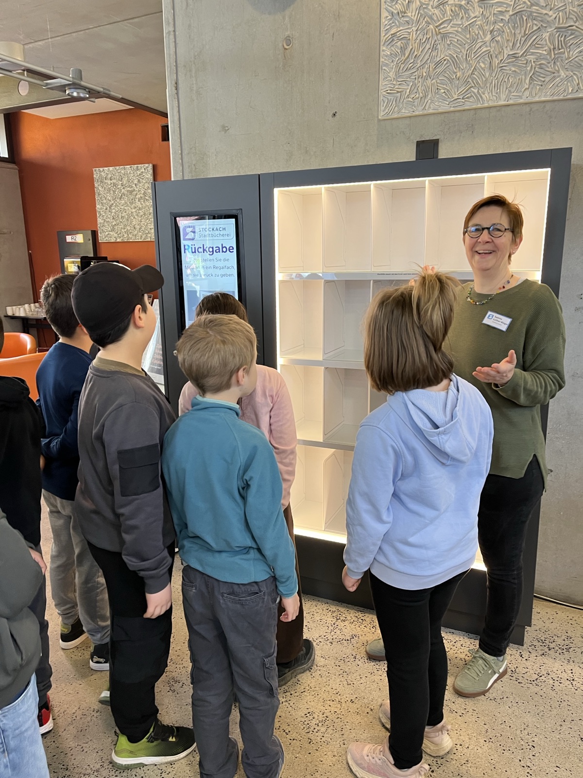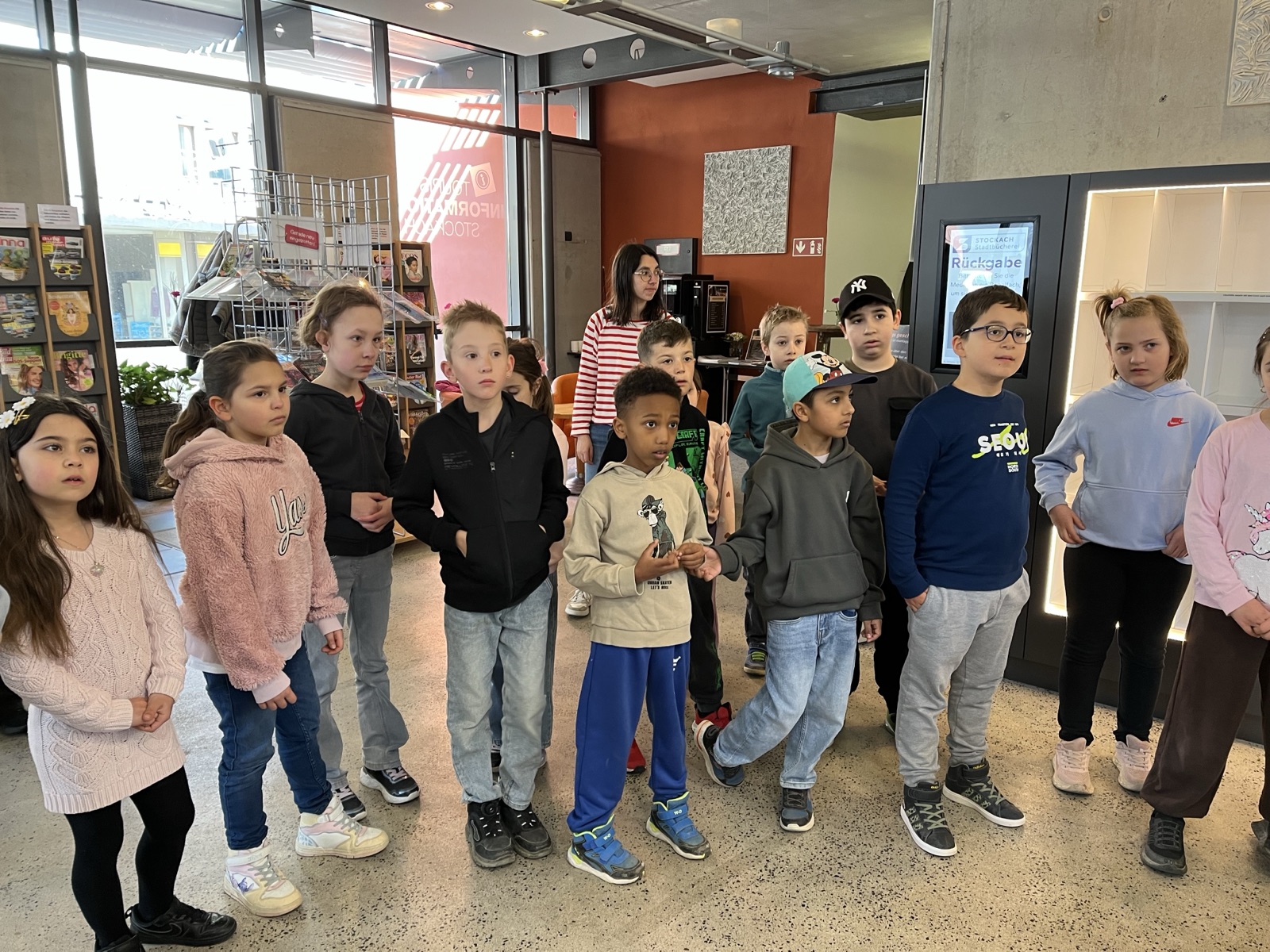 Die zweiten Klassen der Sonnenland-Schule machten diese Woche einen Ausflug in die Stadtbücherei Stockach. Dort wurden sie herzlich empfangen und durften es sich zunächst gemütlich machen, um der Geschichte von Herrn Fuchs zu lauschen, die ihnen vorgelesen wurde. Gebannt verfolgten die Kinder die Erzählung und tauchten gemeinsam in die Welt der Bücher ein.