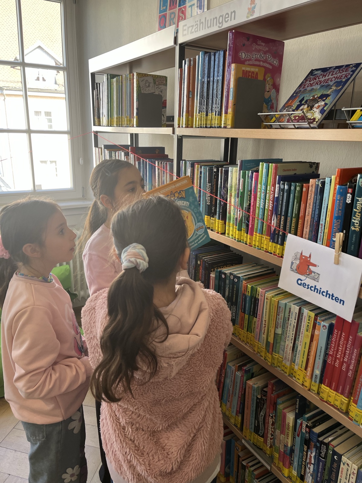 Im Anschluss blieb den Schülerinnen und Schülern noch genügend Zeit, die Bücherei selbst zu erkunden. Neugierig stöberten die Kinder durch die Regale, entdeckten neue Geschichten und probierten die Spielangebote der Bücherei aus. Für viele Kinder war es ein besonderes Erlebnis, die große Auswahl an Büchern kennenzulernen und die Bücherei als Ort voller spannender Entdeckungen zu erleben.