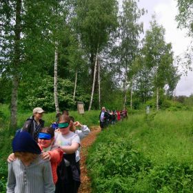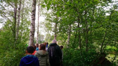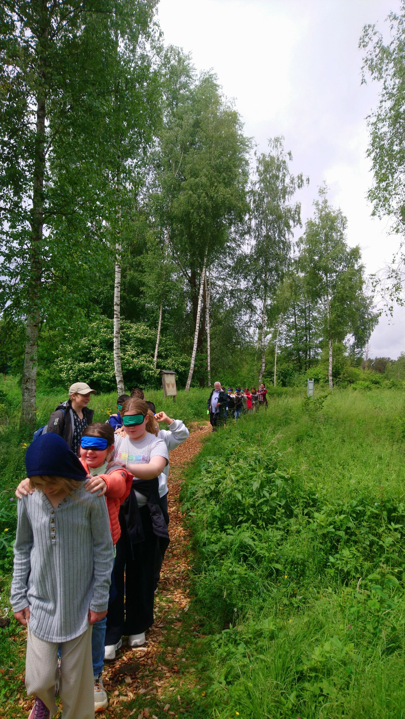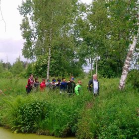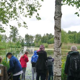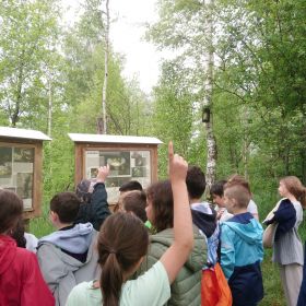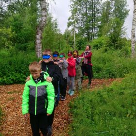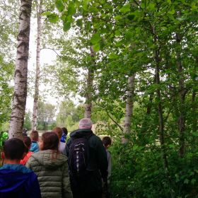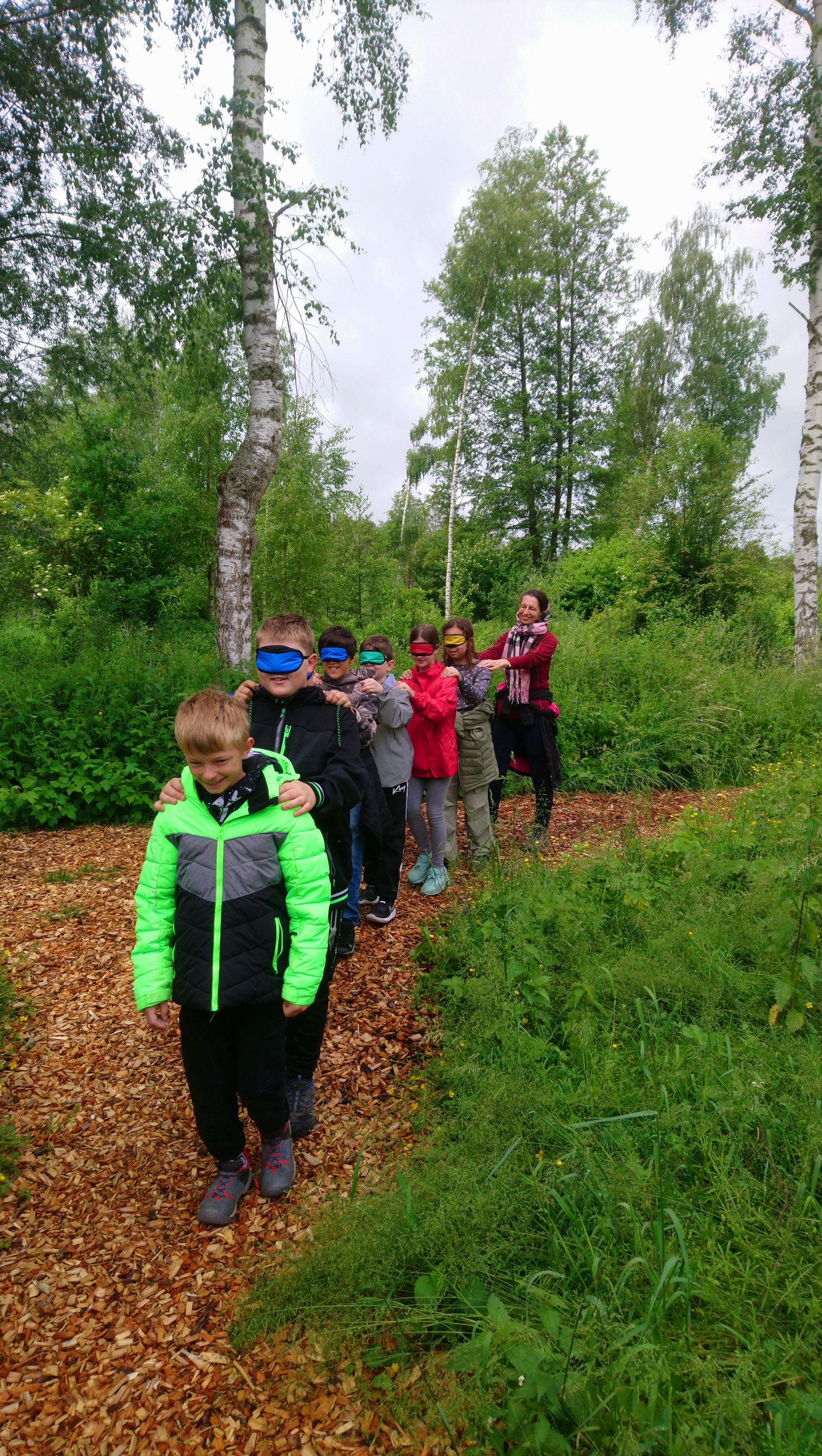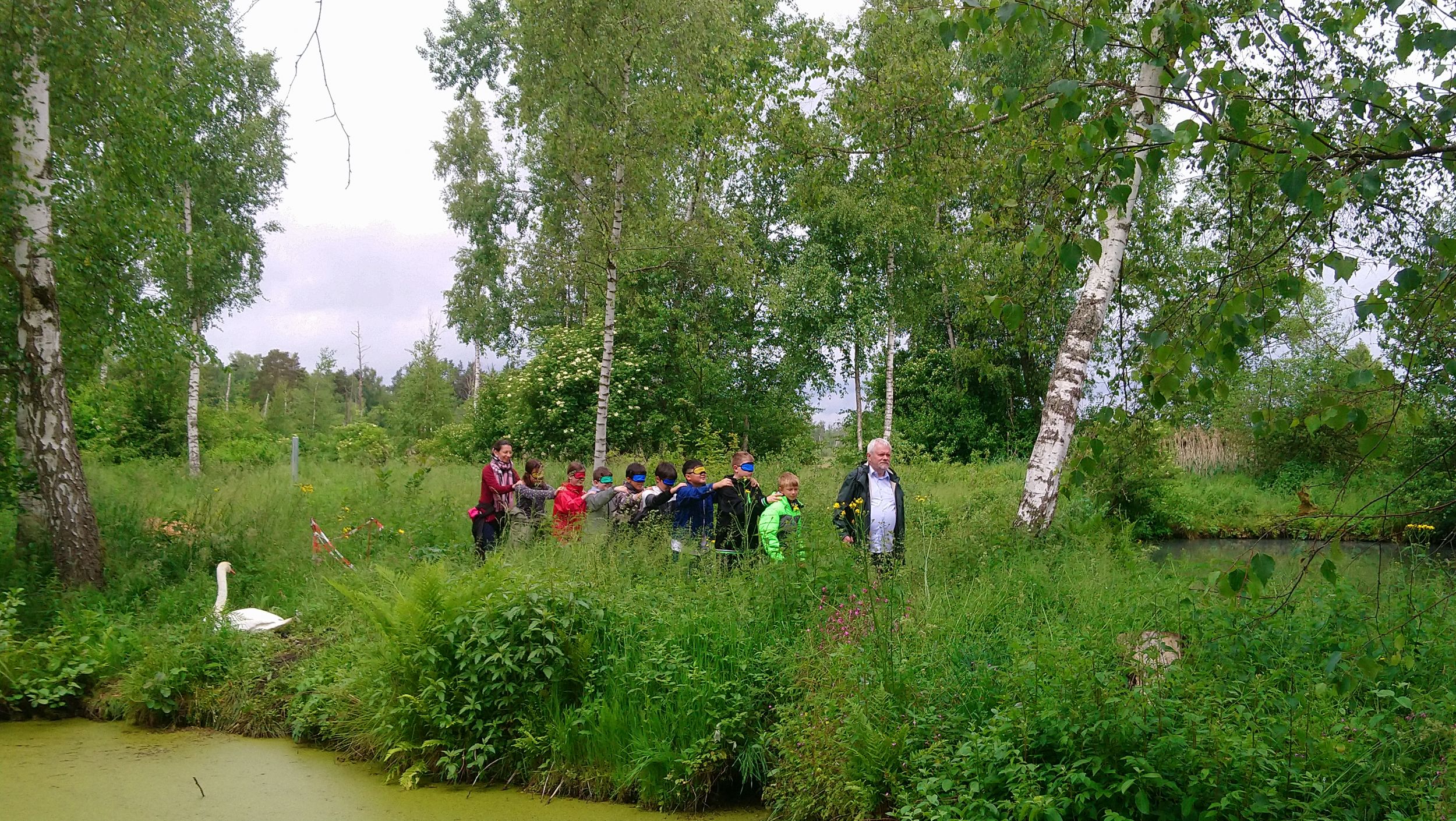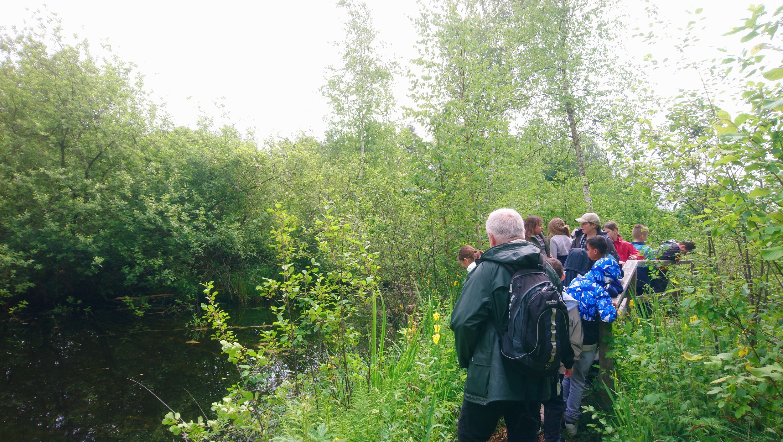 Nachdem morgens alle Kinder gut gelaunt und sehr aufgeregt ihr Gepäck in die Klassenzimmer geschleppt haben, ging es auch schon los. Die Klassen fuhren zum Naturschutzzentrum Wilhelmsdorf und wurden dort gleich von Frau Wagner in Empfang genommen. Nach einem Fühl-Spiel zu Beginn begann die Wanderung durch den Moor-Erlebnis-Pfad. Dabei konnten die Schülerinnen und Schüler zahlreiche spannende Entdeckungen machen und viele Fragen stellen. Besonders der "Wackelboden" des Moors faszinierte die Kinder. Trotz des regnerischen Wetters konnten viele Tiere beobachtet werden, unter anderem Libellen, ein Schwan, viele kleine Erdkröten-Babys und Frösche. Sogar die Sumpfschildkröten zeigten sich. Nach circa zwei Stunden war die Gruppe wieder zurück am Naturschutzzentrum und wurde dort mit einem Lagerfeuer überrascht. Die Kinder grillten, trotz einsetzendem Regen, munter ihre Würstchen und erkundeten im Anschluss den naheliegenden Spielplatz.