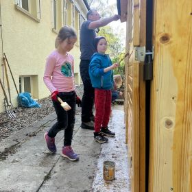 Auch unsere neue Gartenhütte wurde fleißig gestrichen. Die Neuanschaffung der Hütte wurde durch eine Spende von Radio 7 möglich gemacht. In der neuen Hütte sollen zukünftig unsere Gartengeräte Platz finden.