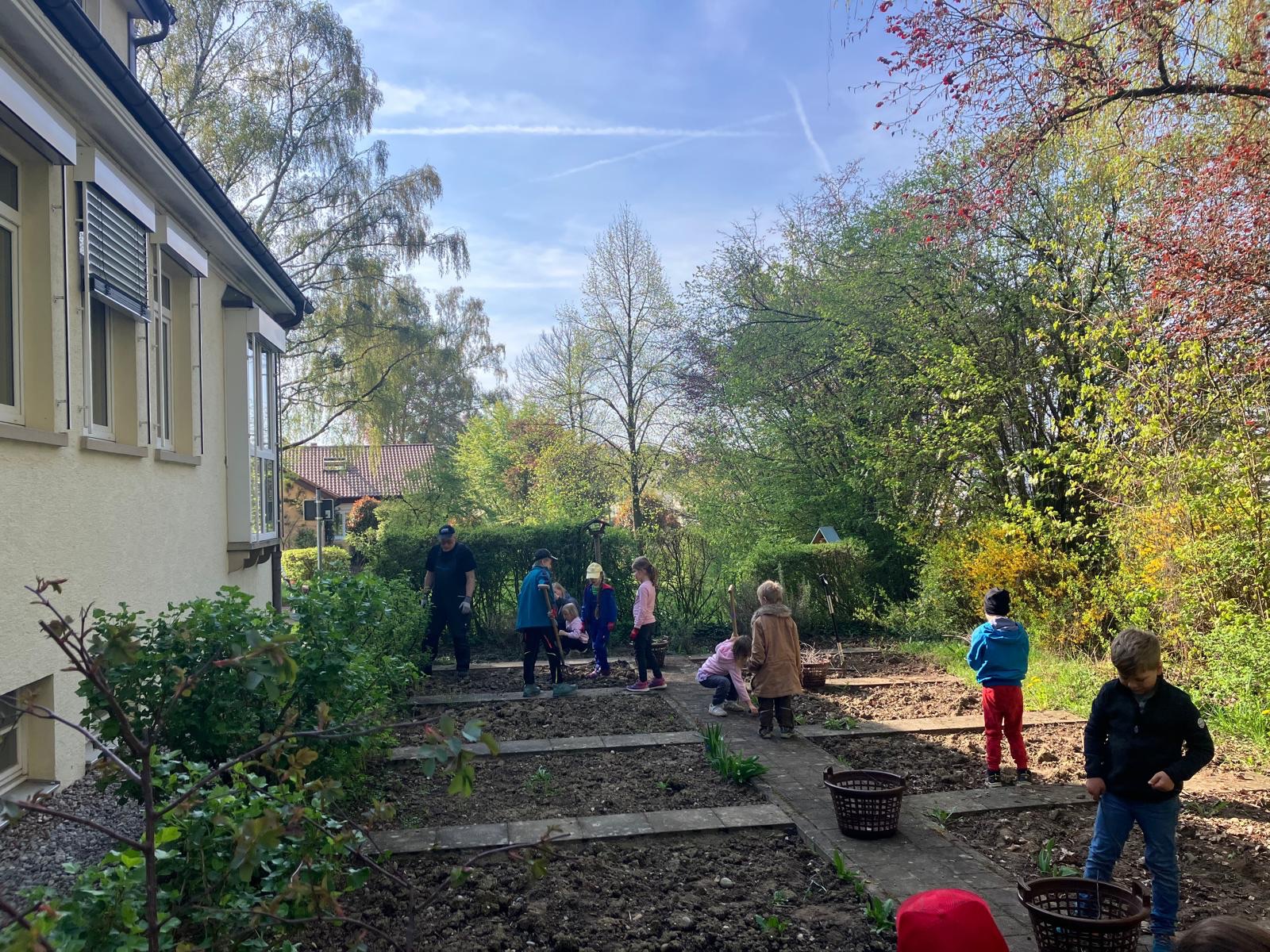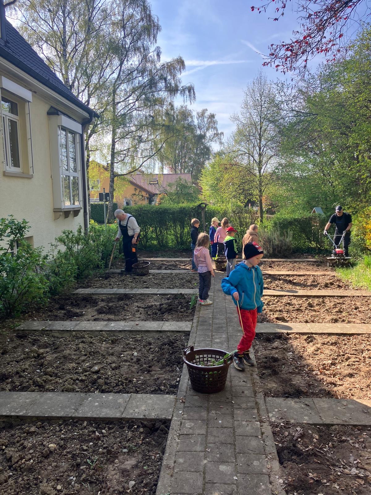 Bei bestem Wetter und Sonnenschein wurde am vergangenen Samstag der Schulgarten fit für die Frühjahrsbestellung gemacht. Gemeinsam mit tatkräftigen Eltern und Kindern wurden Unkraut gezupft, neue Kräuter gesetzt und Kartoffeln gesteckt. Die Eltern kamen gut ausgestattet und so wurde der Boden durch eine professionelle Maschine gelockert und für das Gemüse im Mai vorbereitet.