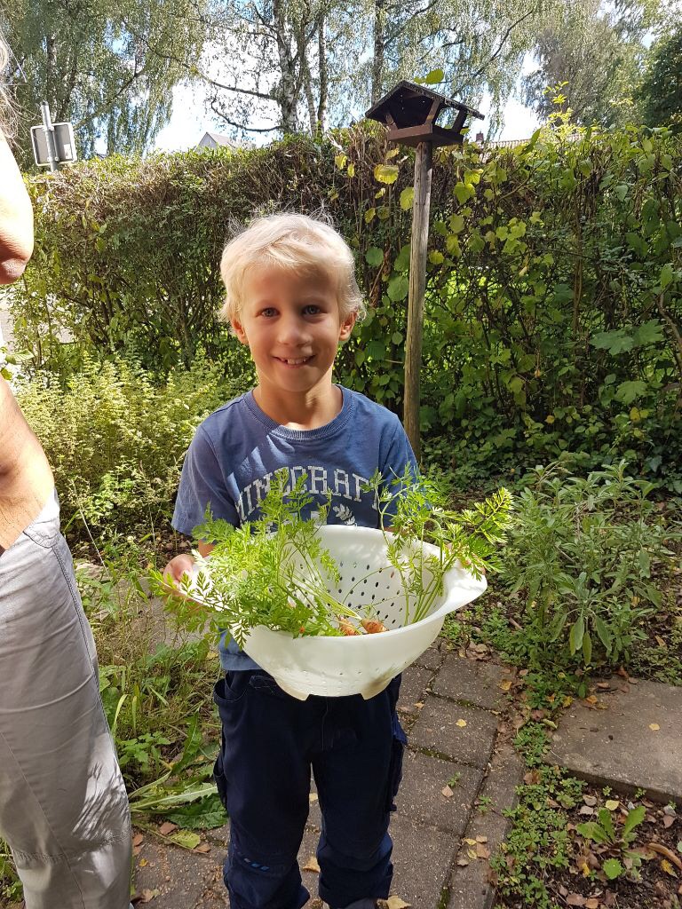Das Warten wurde belohnt! Eine ganze Schüssel voll leckerer Möhrchen konnte geerntet werden.