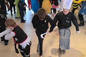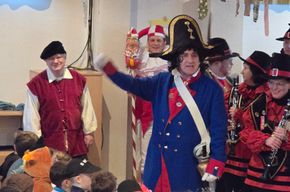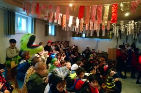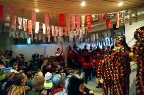 Nach der Polonaise durchs Schulhaus versammelten sich alle Kinder und Lehrkräfte in bunten Kostümen in der Pausenhalle der Schule. Die Stockacher Narren ließen nicht lange auf sich warten und brachten mit der Hans-Kuony-Kapelle, der Abordnung des Narrengerichts, den Hänsele, den Marketenderinnen, den Laufnarren und den Alt-Stockacherinnen Fasnachtsstimmung ins Haus.