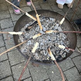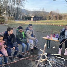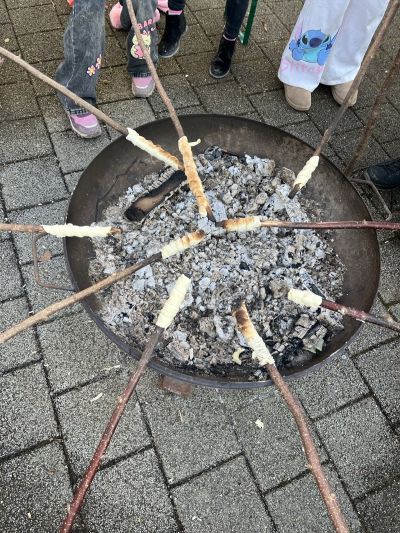 Es ist kalt und karg auf dem Pausenhof. Was gibt es bei den eisigen Temperaturen also Schöneres als ein Lagerfeuer zu machen, um sich aufzuwärmen? Gesagt- getan. Am Anfang dieser Woche durften alle Klassenstufen auf dem Pausenhof ein Lagerfeuer in der Feuerschale entzünden und Stockbrot grillen. Die Schülerinnen und Schüler hatten dabei viel Spaß und es hat allen gut geschmeckt!