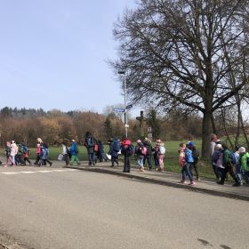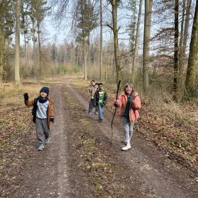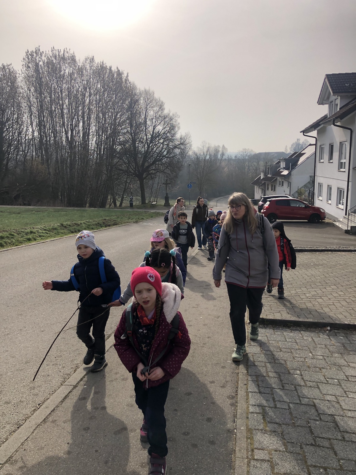 Überhaupt nicht winterlich war es am Freitag, den 06. März - unserem Winterwandertag. Davon ließen sich die Schülerinnen und Schüler der Sonnenland-Schule jedoch nicht abschrecken und erwanderten fleißig ihre Ziele in und um Stockach herum. Ob auf dem Abenteuerspielplatz, beim Wildtiergehege oder beim Erkunden des Hindelwanger Waldes mit selbst gesammelten Stöcken – die Kinder waren mit großer Freude unterwegs. Neugierig entdeckten sie ihre Umgebung, ließen ihrer Fantasie freien Lauf und erlebten viele kleine Abenteuer in der Natur.