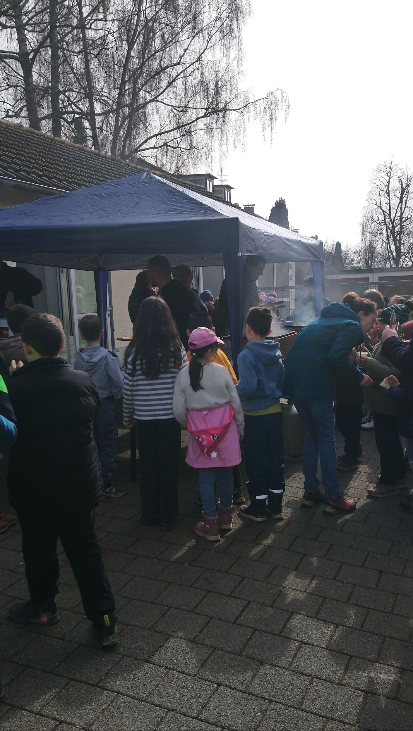 Zurück an der Schule wartete auf dem Pausenhof bereits der Elternbeirat, der Würstchen und Grillkäse für alle zubereitet hatte. Gemeinsam ließen die Kinder den erlebnisreichen Tag ausklingen – satt, zufrieden und rundum glücklich.