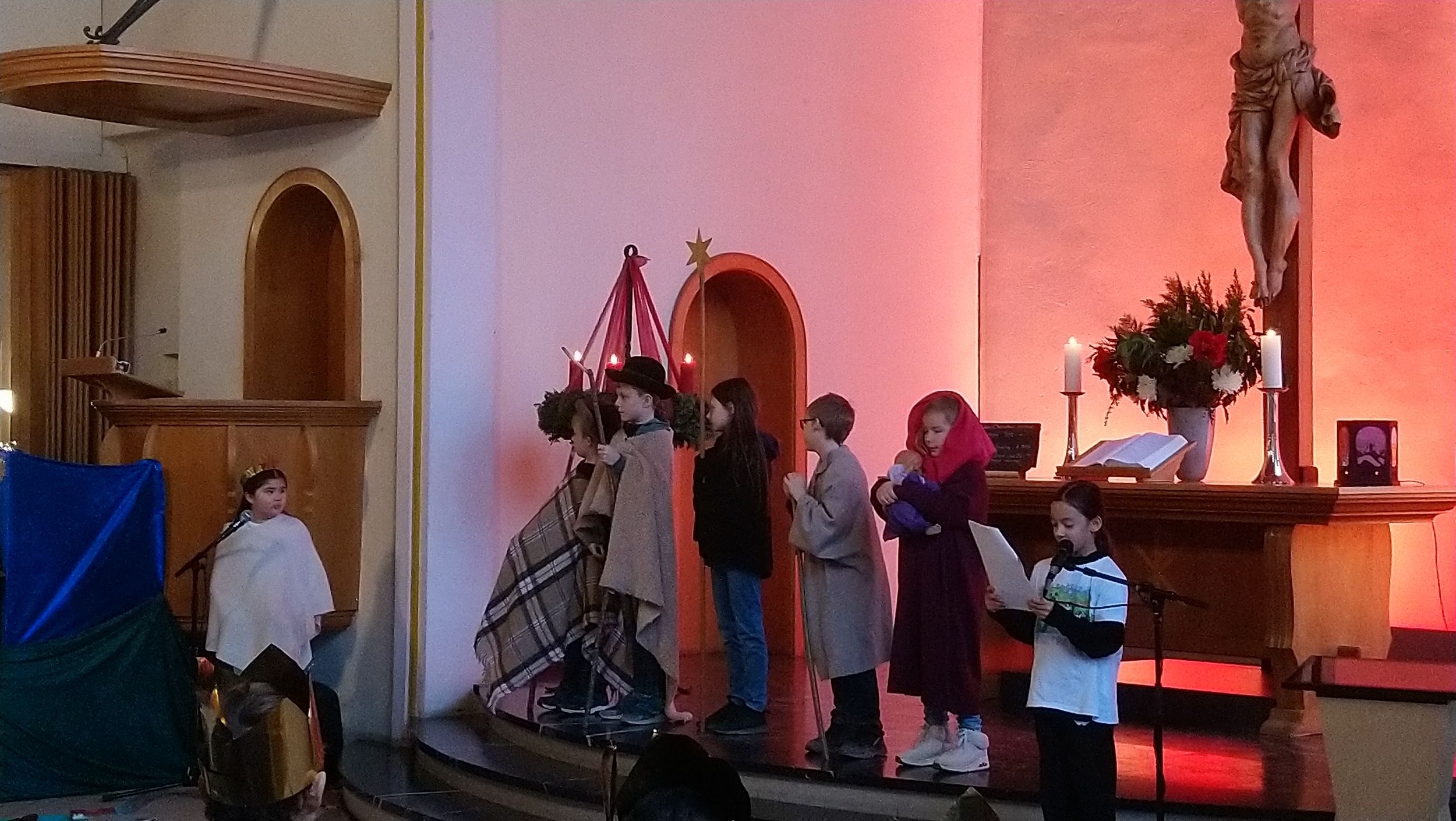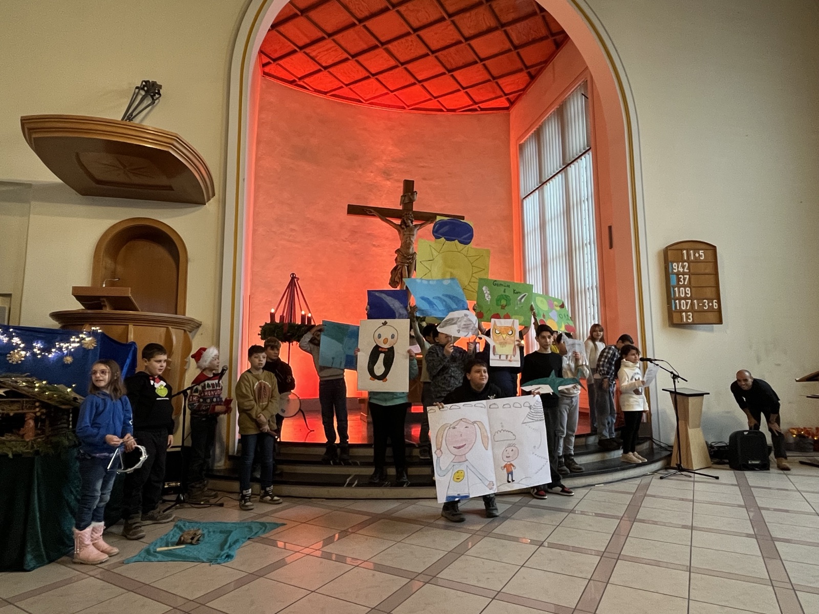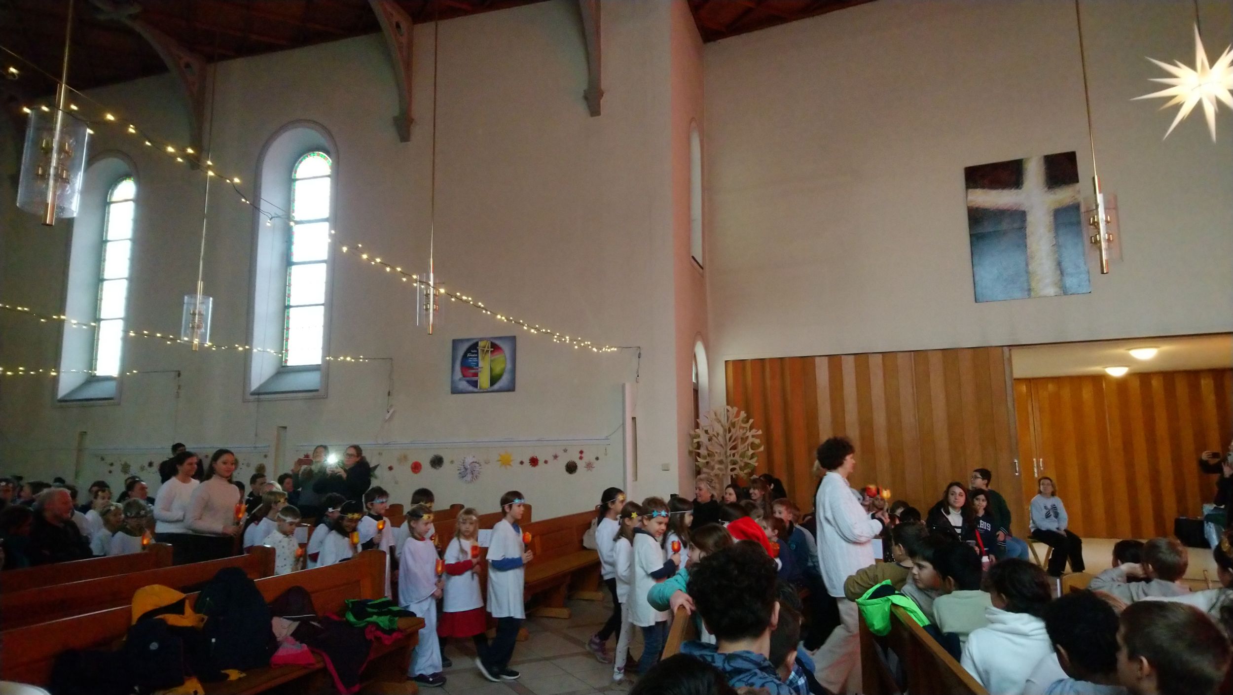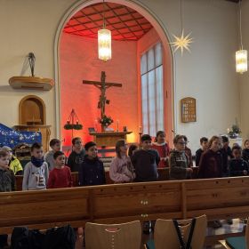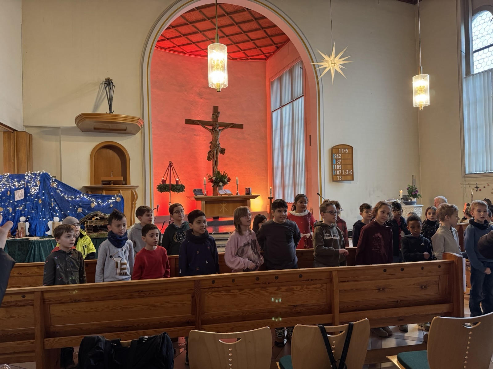 Den letzten Schultag vor den Weihnachtsferien wollten wir gebührend mit einer Weihnachtsandacht feiern. Eltern, Geschwister und Großeltern der Schülerinnen und Schüler sind hierzu zahlreich in der Kirche erschienen.