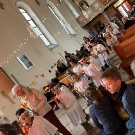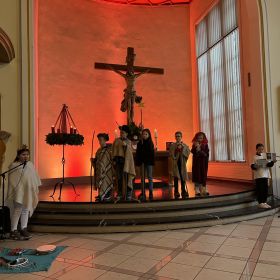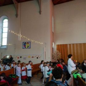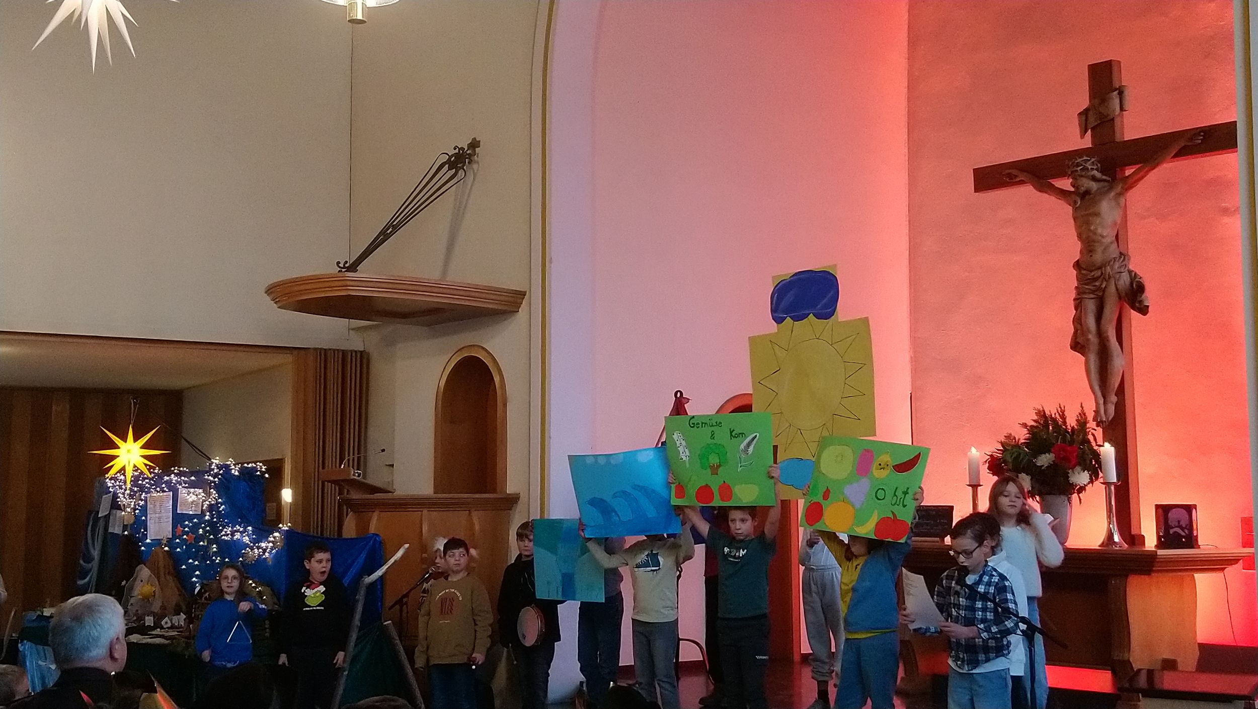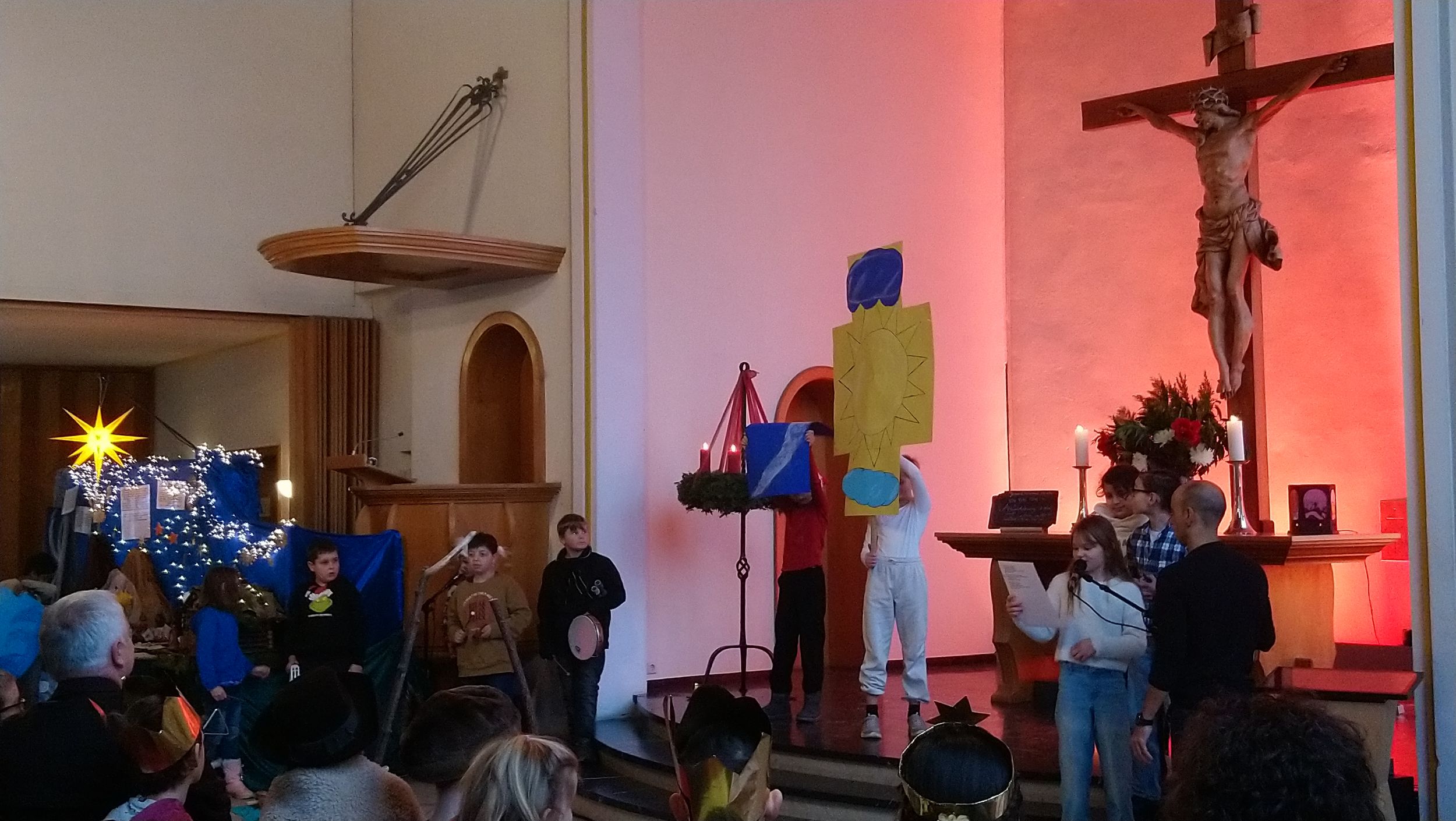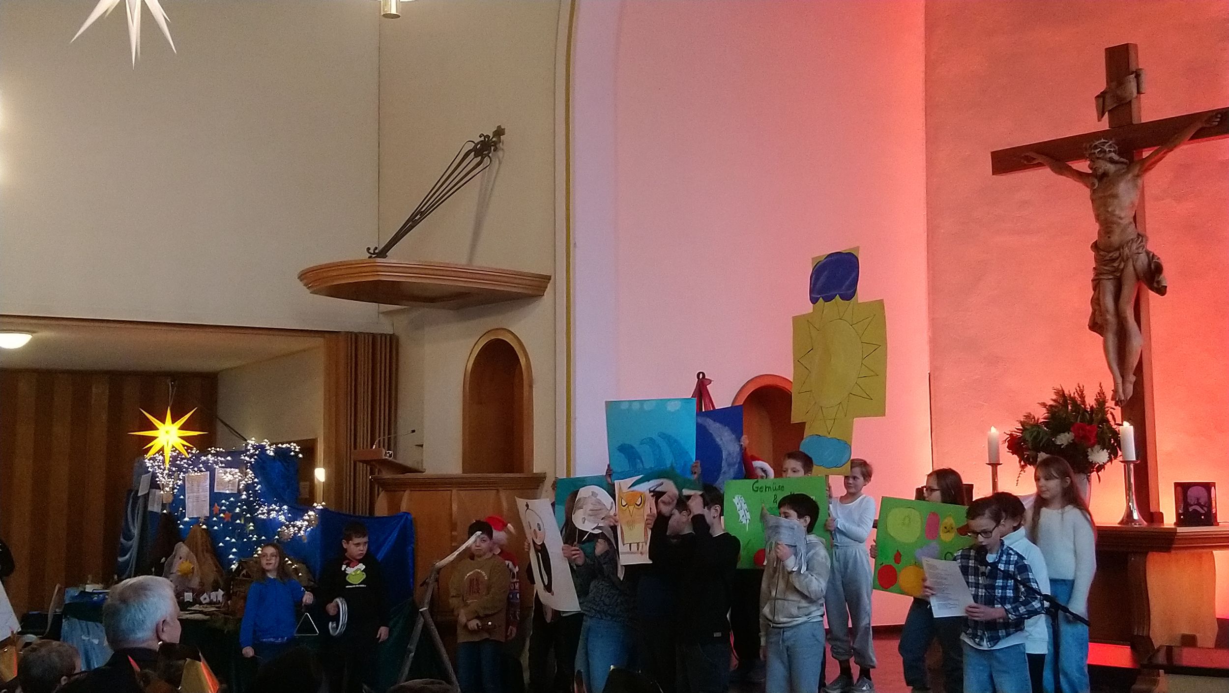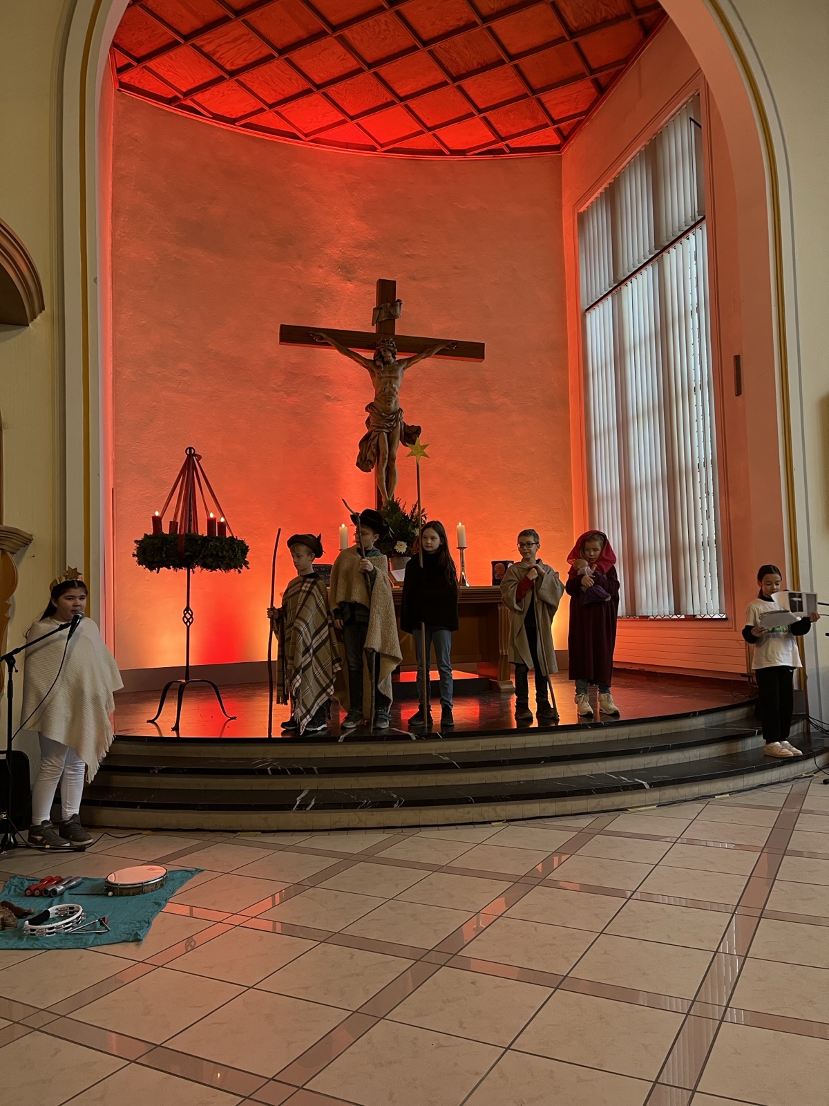 Den letzten Schultag vor den Weihnachtsferien wollten wir gebührend mit einer Weihnachtsandacht feiern. Eltern, Geschwister und Großeltern der Schülerinnen und Schüler sind hierzu zahlreich in der Kirche erschienen.