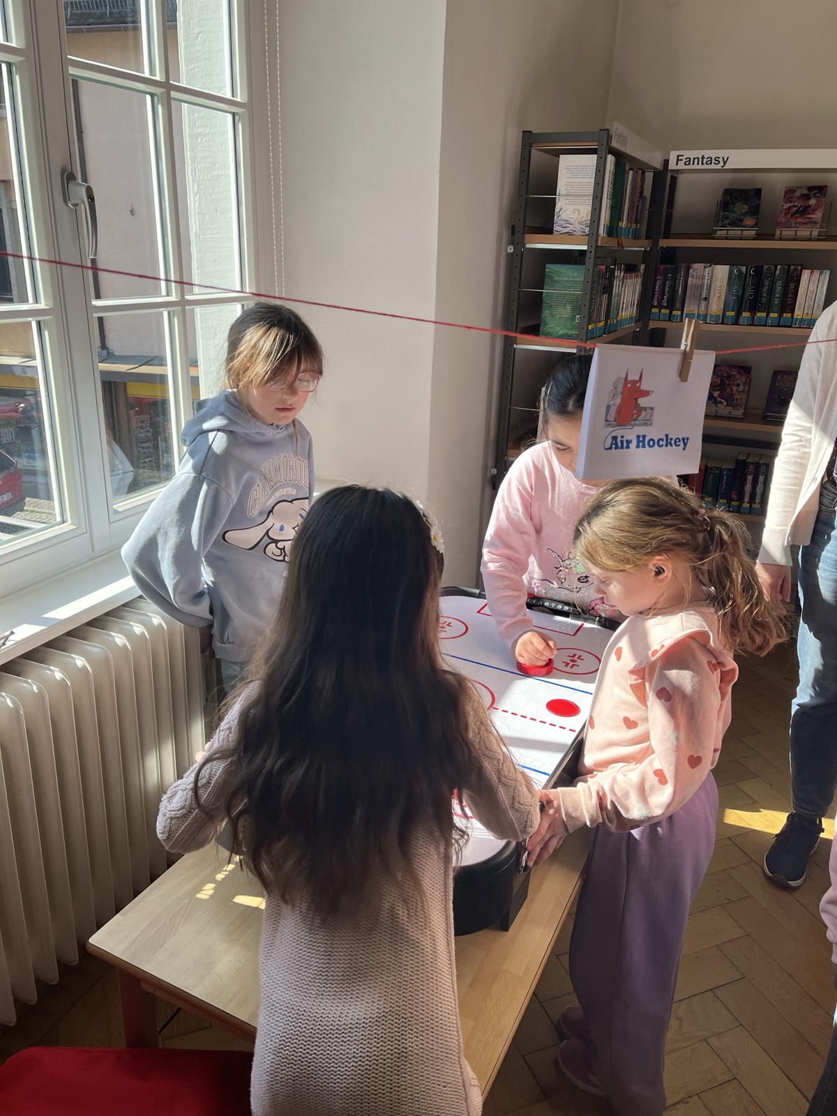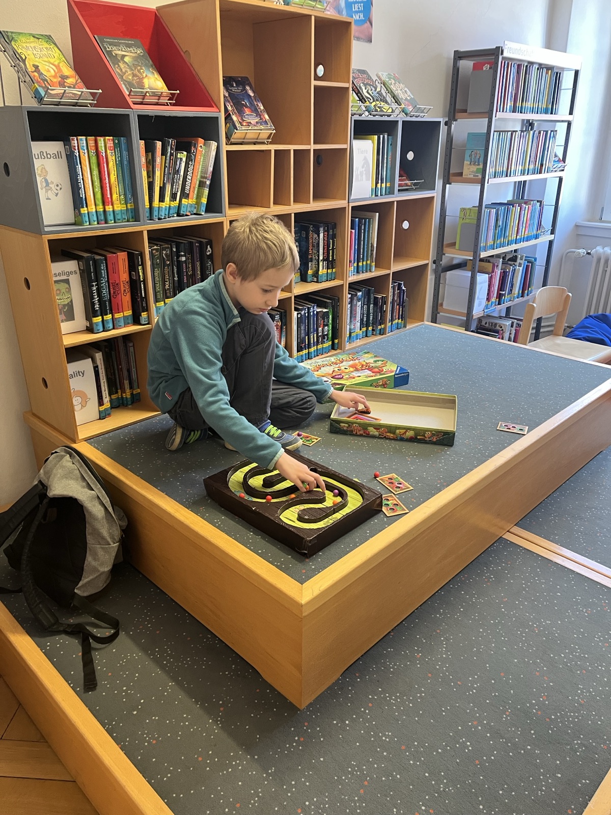 Im Anschluss blieb den Schülerinnen und Schülern noch genügend Zeit, die Bücherei selbst zu erkunden. Neugierig stöberten die Kinder durch die Regale, entdeckten neue Geschichten und probierten die Spielangebote der Bücherei aus. Für viele Kinder war es ein besonderes Erlebnis, die große Auswahl an Büchern kennenzulernen und die Bücherei als Ort voller spannender Entdeckungen zu erleben.