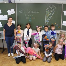 Im Anschluss daran hießen die Zweitklässler ihre neuen MitschülerInnen mit dem Theaterstück "Der Löwe, der nicht schreiben konnte" herzlich in der Schule willkommen. Danach wurden die Erstklässler von ihren jeweiligen Klassenlehrerinnen begrüßt und gingen gemeinsam zu einer ersten Schulstunde in ihre Klassenzimmer. Währenddessen war für die Eltern Zeit miteinander ins Gespräch zu kommen und sich die Räumlichkeiten der Sonnenland-Schule genauer anzusehen.