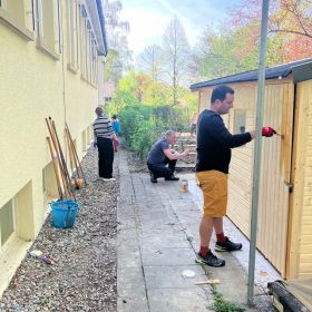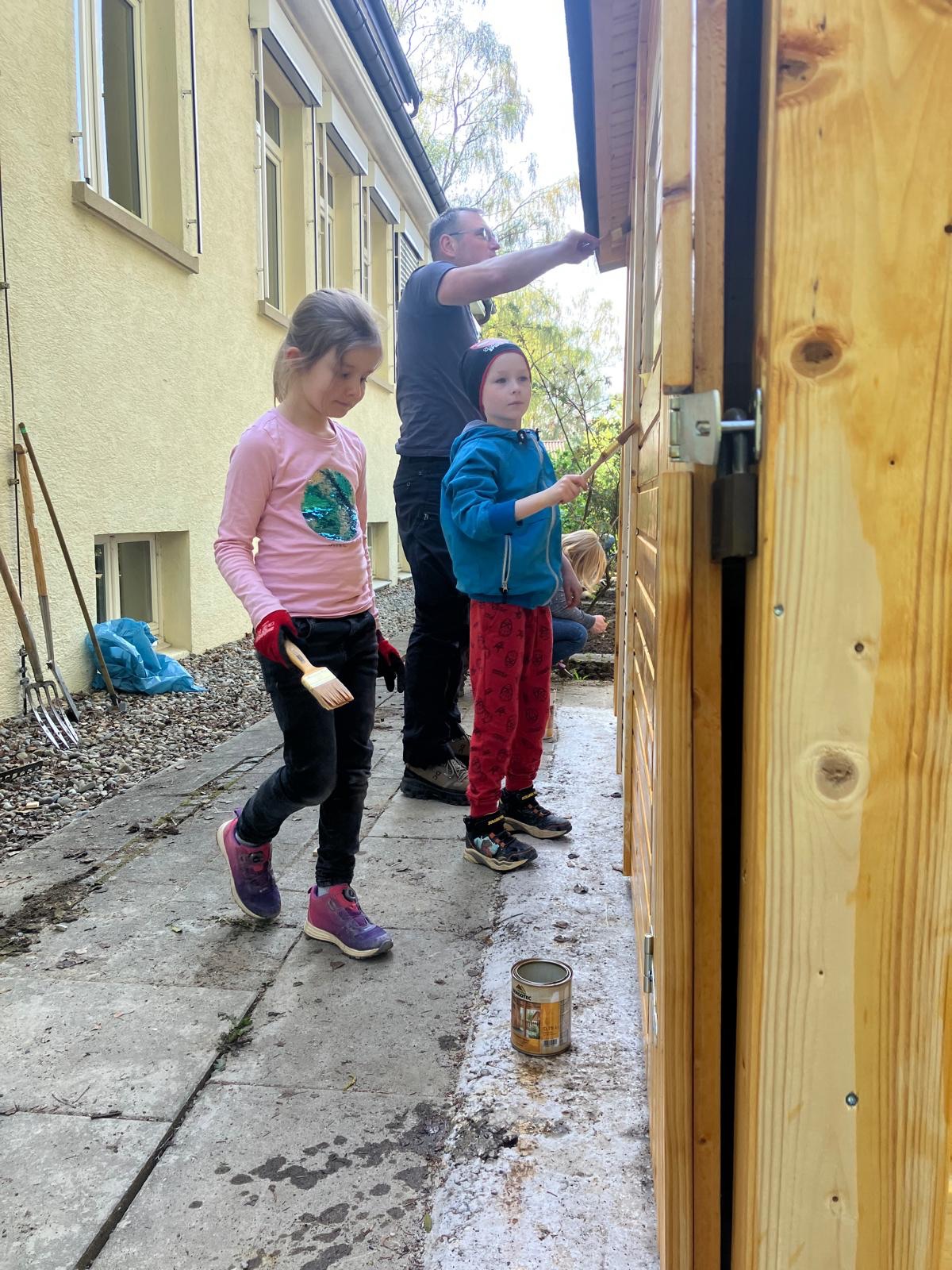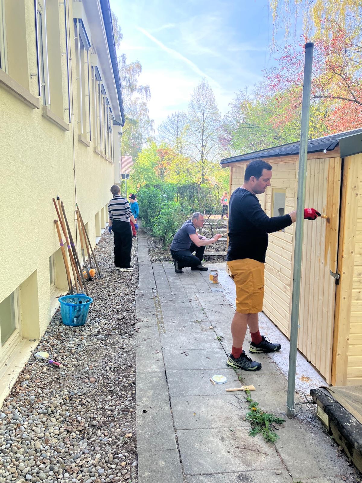 Auch unsere neue Gartenhütte wurde fleißig gestrichen. Die Neuanschaffung der Hütte wurde durch eine Spende von Radio 7 möglich gemacht. In der neuen Hütte sollen zukünftig unsere Gartengeräte Platz finden.