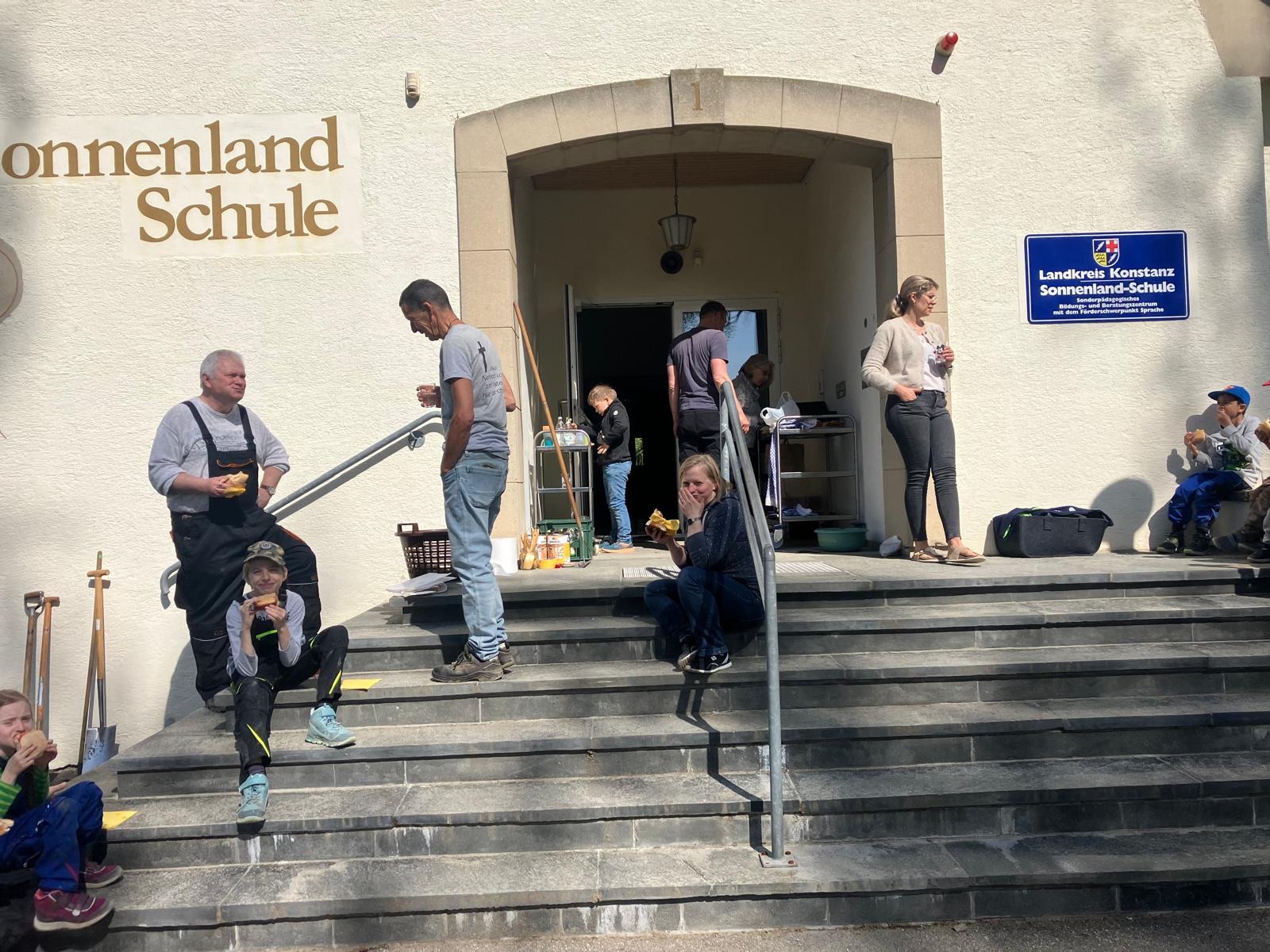 Bei bestem Wetter und Sonnenschein wurde am vergangenen Samstag der Schulgarten fit für die Frühjahrsbestellung gemacht. Gemeinsam mit tatkräftigen Eltern und Kindern wurden Unkraut gezupft, neue Kräuter gesetzt und Kartoffeln gesteckt. Die Eltern kamen gut ausgestattet und so wurde der Boden durch eine professionelle Maschine gelockert und für das Gemüse im Mai vorbereitet.