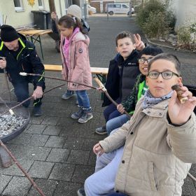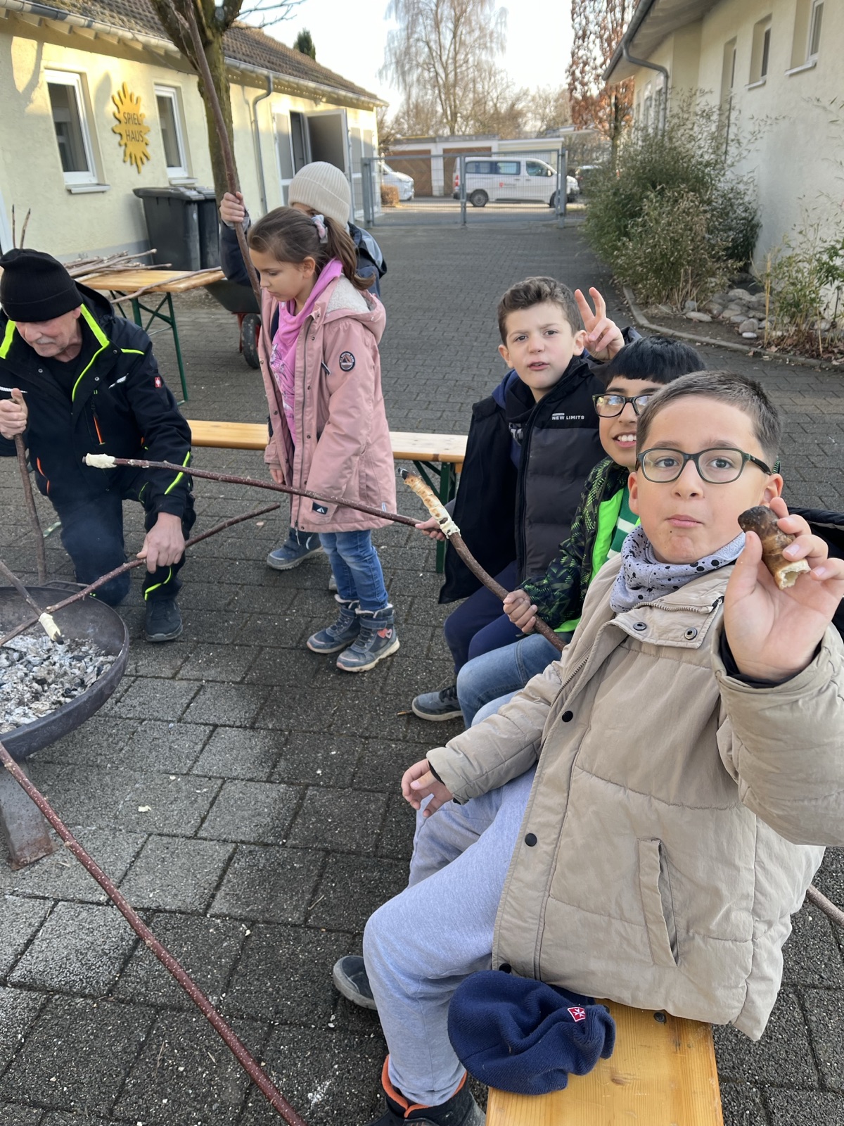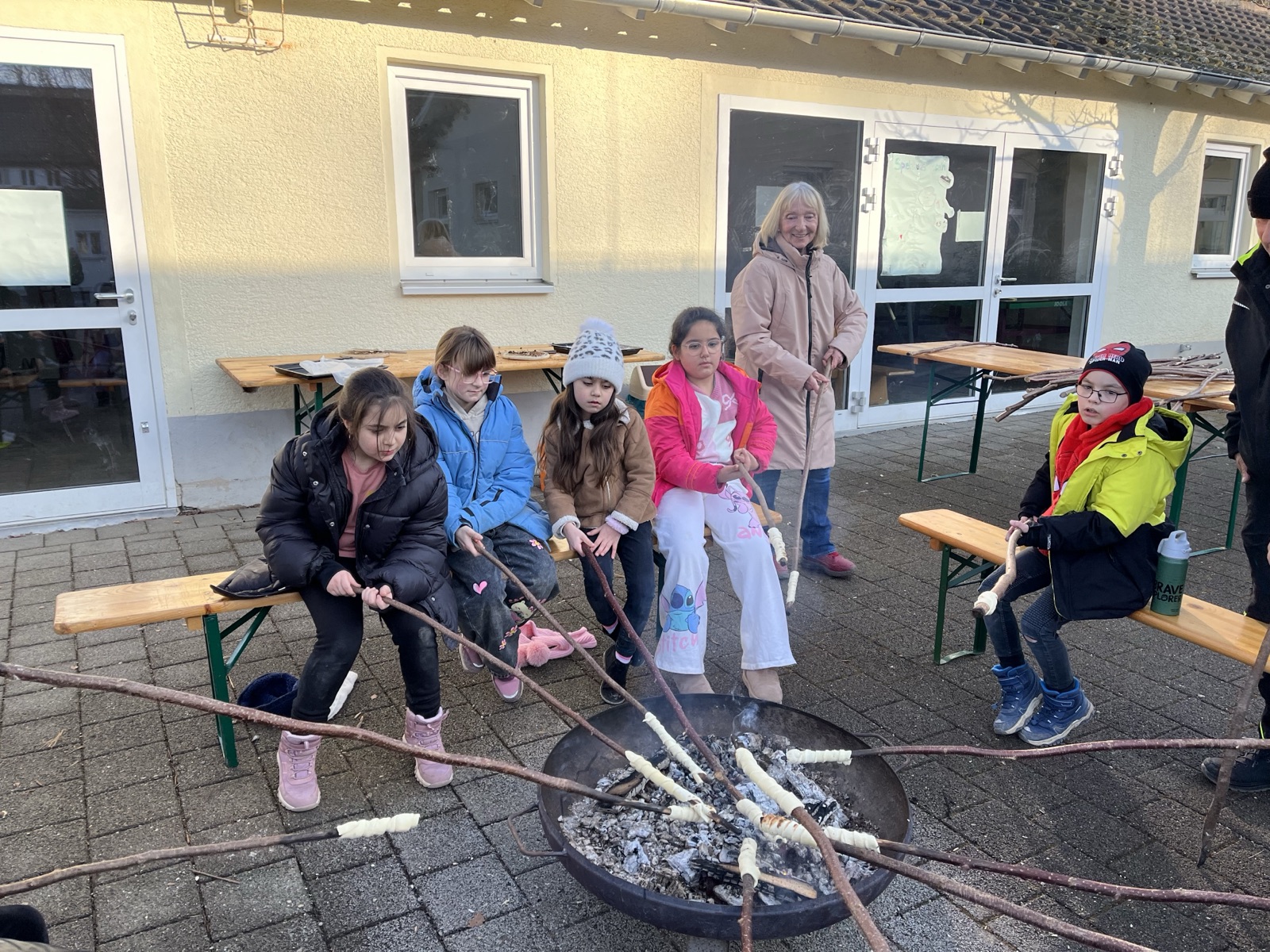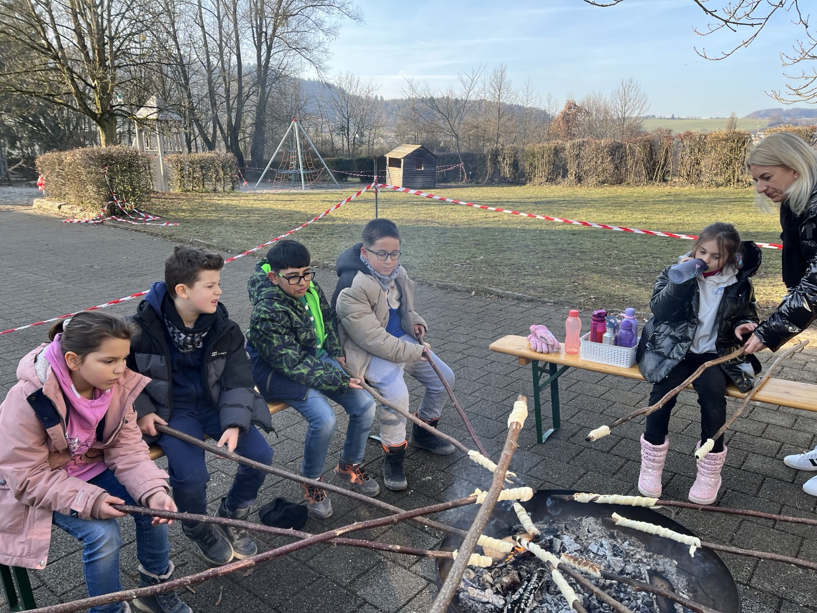 Es ist kalt und karg auf dem Pausenhof. Was gibt es bei den eisigen Temperaturen also Schöneres als ein Lagerfeuer zu machen, um sich aufzuwärmen? Gesagt- getan. Am Anfang dieser Woche durften alle Klassenstufen auf dem Pausenhof ein Lagerfeuer in der Feuerschale entzünden und Stockbrot grillen. Die Schülerinnen und Schüler hatten dabei viel Spaß und es hat allen gut geschmeckt!