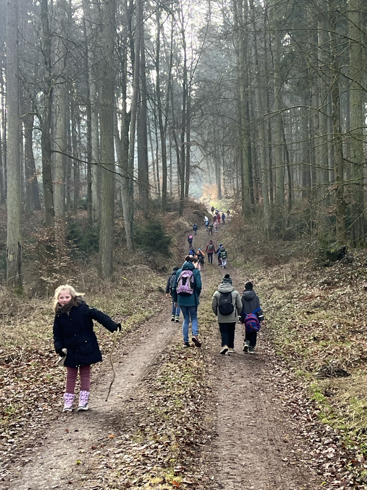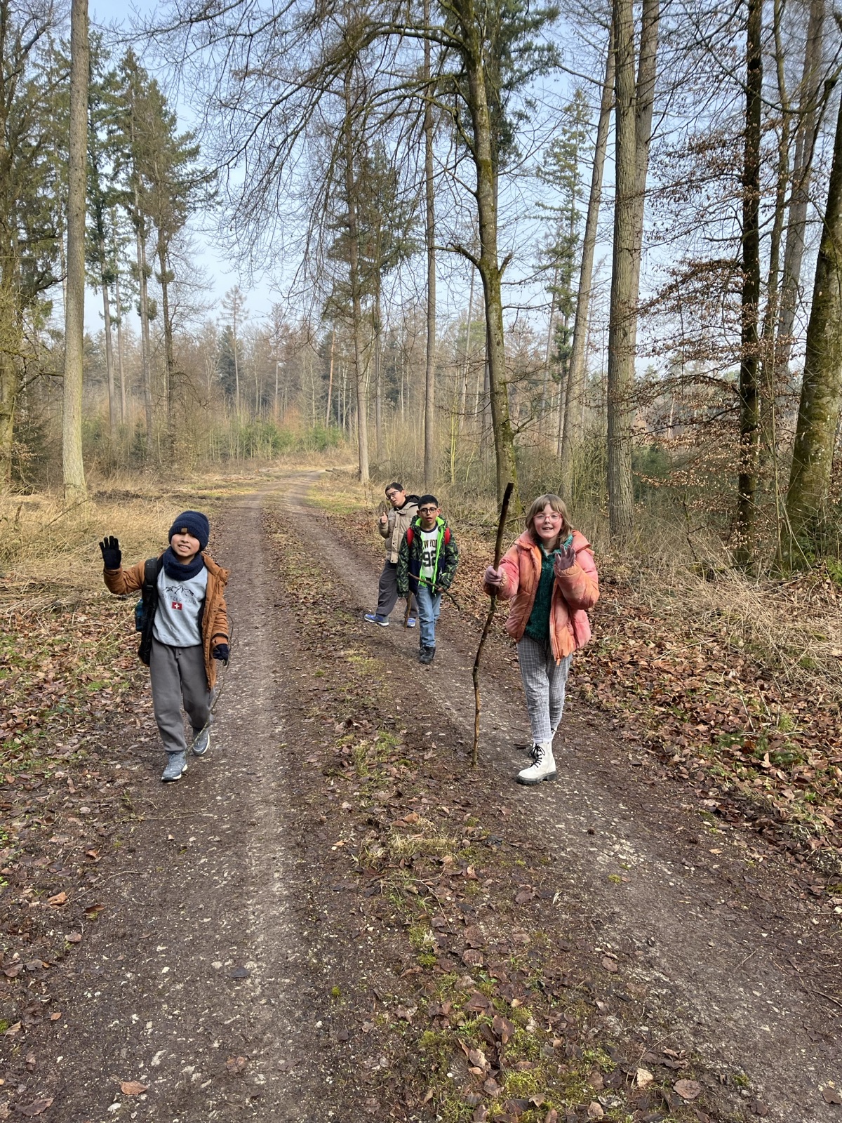Überhaupt nicht winterlich war es am Freitag, den 06. März - unserem Winterwandertag. Davon ließen sich die Schülerinnen und Schüler der Sonnenland-Schule jedoch nicht abschrecken und erwanderten fleißig ihre Ziele in und um Stockach herum. Ob auf dem Abenteuerspielplatz, beim Wildtiergehege oder beim Erkunden des Hindelwanger Waldes mit selbst gesammelten Stöcken – die Kinder waren mit großer Freude unterwegs. Neugierig entdeckten sie ihre Umgebung, ließen ihrer Fantasie freien Lauf und erlebten viele kleine Abenteuer in der Natur.